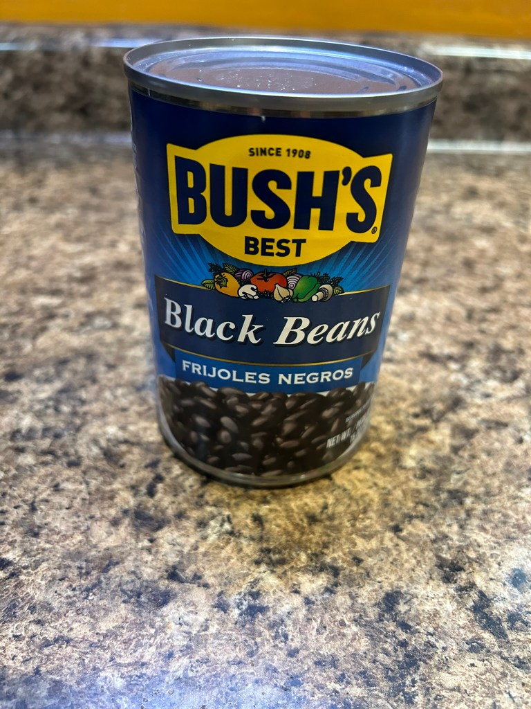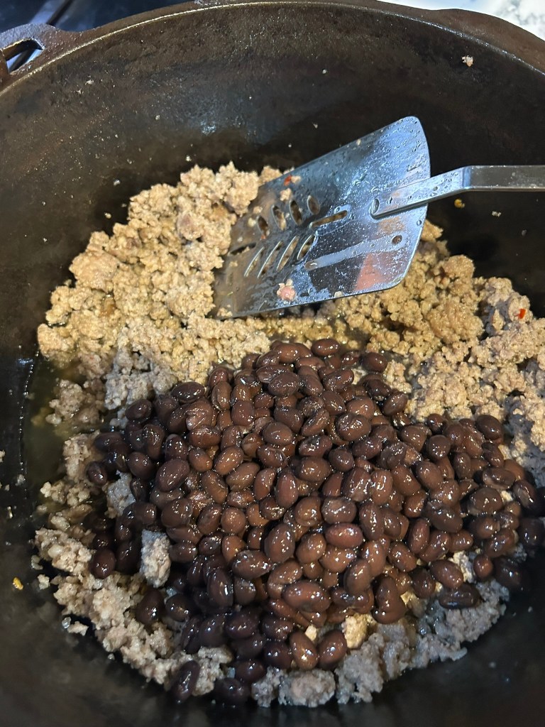 Once the sausage is fried I add a can of black beans.