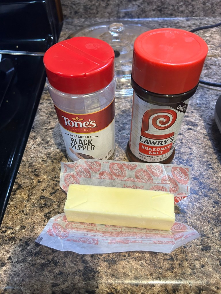 After it starts to blend I remove the lid and feed the rest of the bag into the blender while it is running. Remember to replace the lid before shutting it off. Once its off I remove the lid and season it to taste. We use seasoned salt and pepper, and about 1/2 a stick of real butter to fry it in.